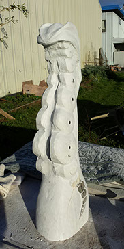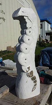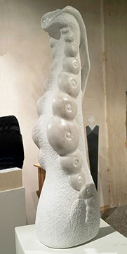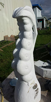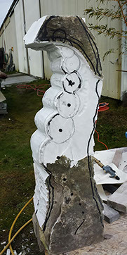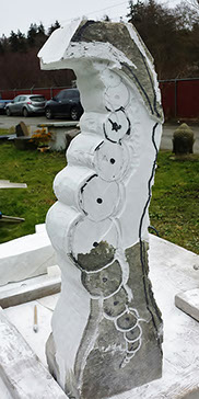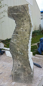 SHIELDED is the third piece in my armor series. I cut it from a 29 inch piece of Carrara marble, using a 4” diamond blade on an angle grinder, a diamond burr on a die grinder and small diamond files.